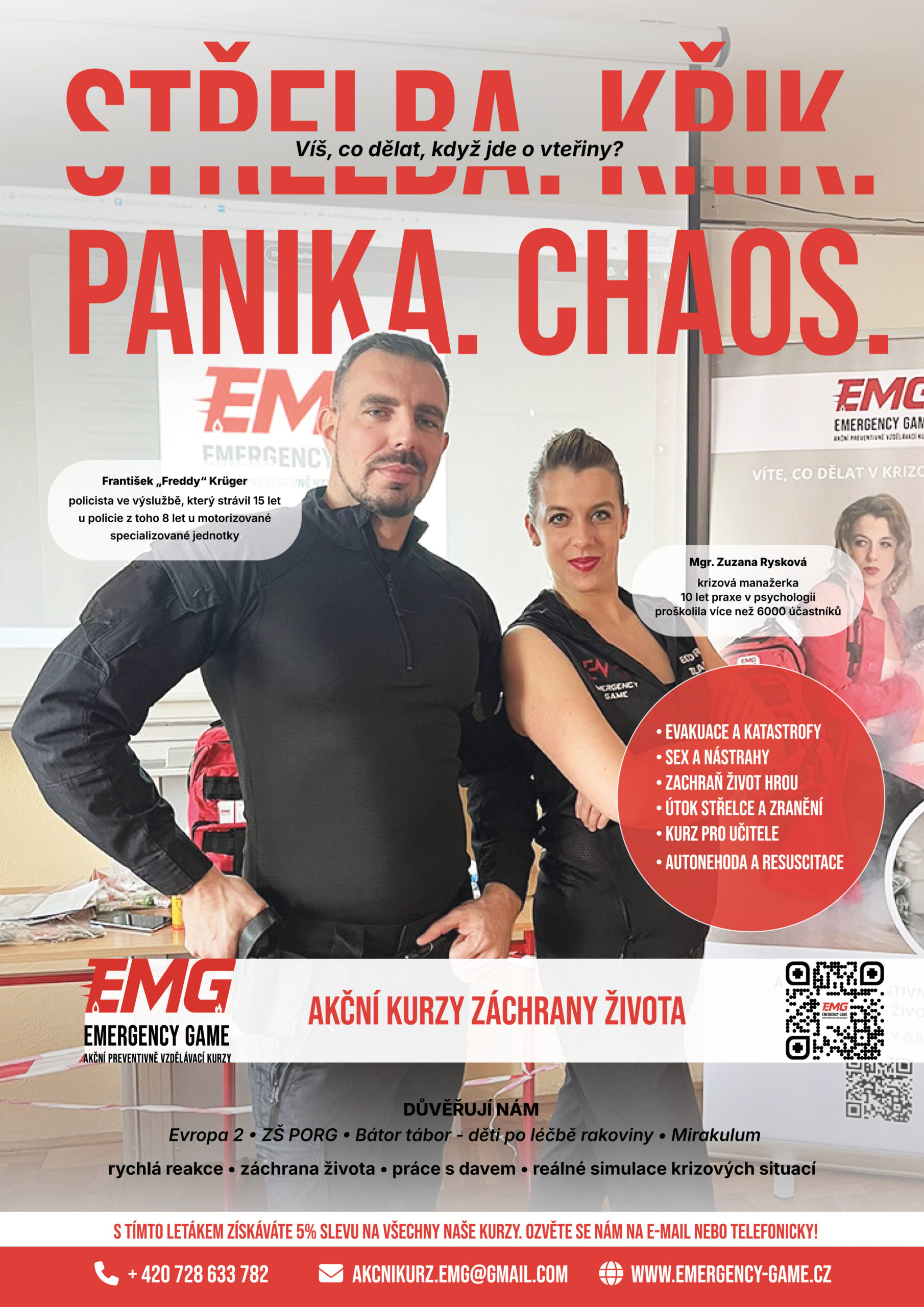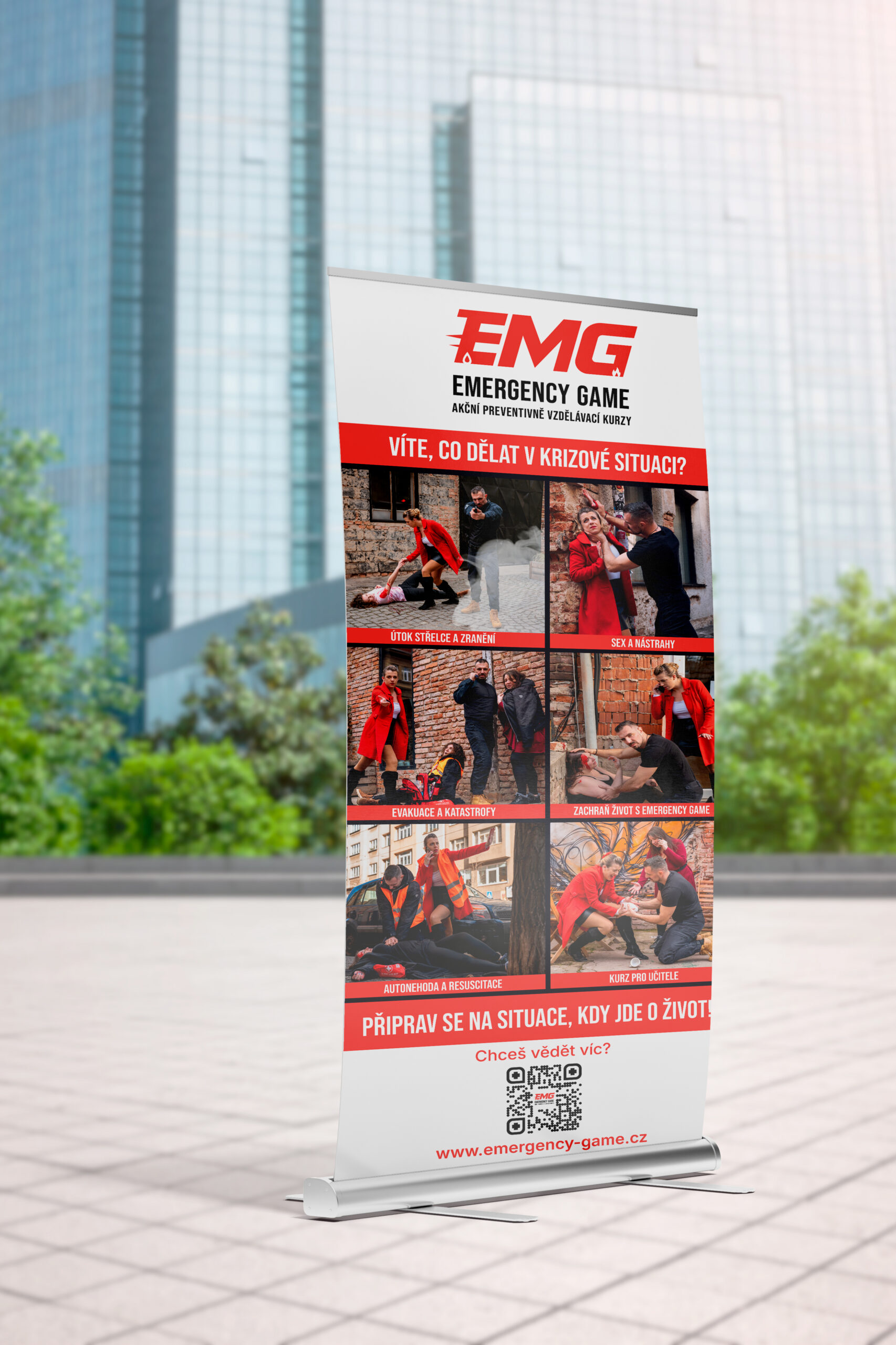 Tento vizuální systém jsme následně aplikovali napříč všemi výstupy – od digitální grafiky až po fyzické tiskoviny. Součástí identity je i unikátní vzor pro dárkové poukazy a další prezentační materiály, které si díky své grafické konzistenci okamžitě spojíte s Emergency game. Všechny prvky jsou navrženy tak, aby fungovaly v dokonalé harmonii a budovaly silnou, rozpoznatelnou značku.